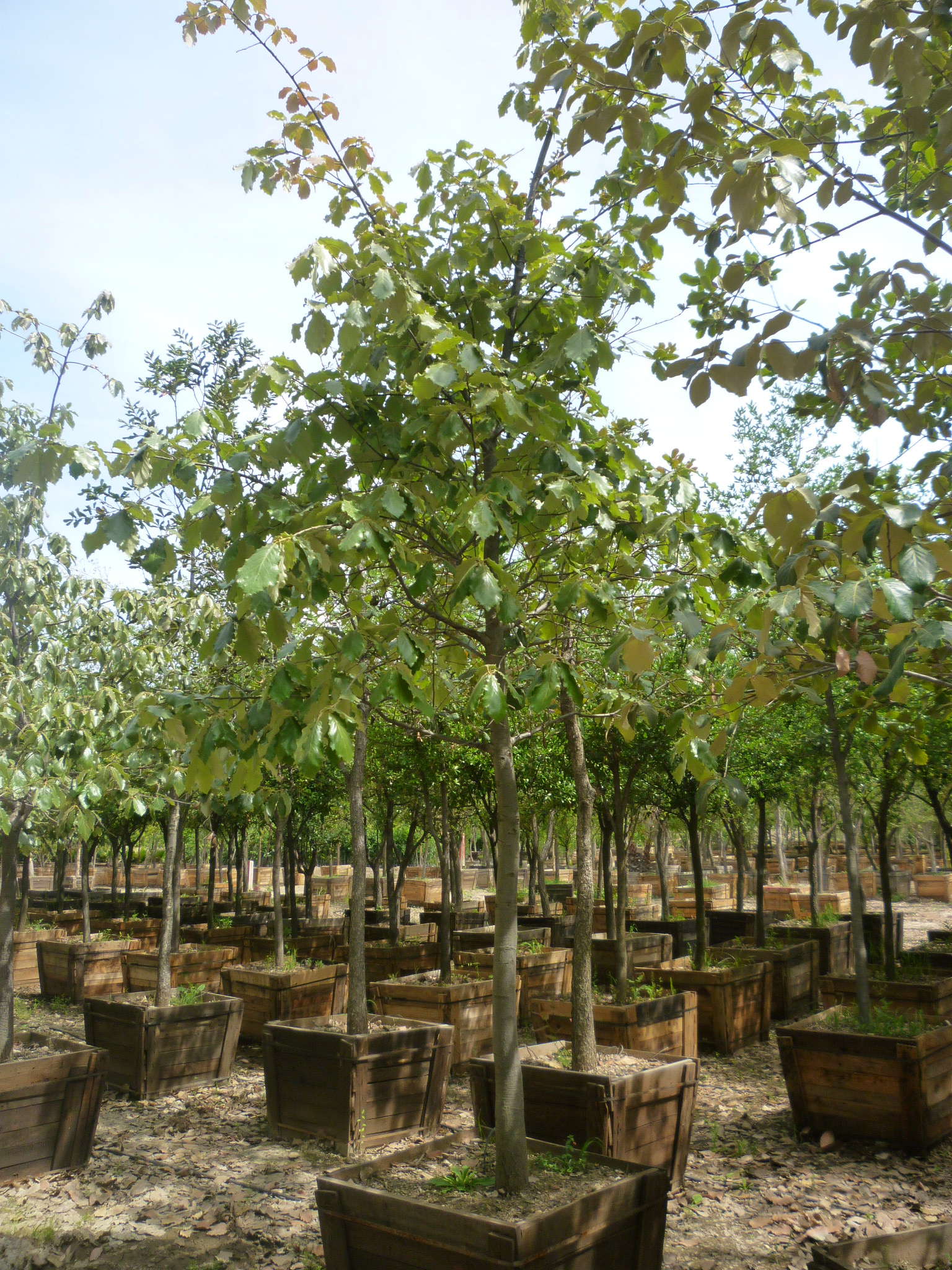 Una gran variedad en especie y tamaño, que han sido cultivados para las necesidades del arquitecto paisajista. Todas las medidas, altura, copa y grosor de tronco, desde árboles para uso forestal hasta árboles en envase de 450 Lts. Nuestras presentaciones mas grandes están en contenedores importados de geo-textil o en cajones de madera tratada para facilitar el manejo y la plantación. También ofrecemos árboles banqueados según la temporada.